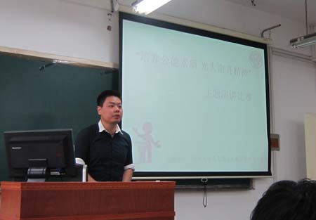 (通讯员:刘佳佳)2012年4月21日上午,马克思主义教育公司第三届研究生学术文化节之演讲比赛在范孙楼430成功举办。此次比赛由马列公司研会副主席王育锋主持,辅导员袁婧老师亲临比赛现场。