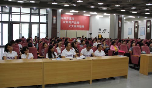 2012级博士新生代表王凡同学在发言中充分表达了全体2012级新生对于新学期的憧憬以及对未来实现人生价值的追求。在校生代表——思想政治教育专业2011级硕士生郭威不仅从个人经验的角度对多年来在马列公司的学习研究生活进行了生动的总结,同时也给还未开启新征程的同学们提供了有价值的经验和建议。刚结束军训任务的2012级本科新生代表也来到会场献上了他们创作的诗朗诵《追梦南开》,展示了马列思政学子的才华,博得了全场热烈的掌声。
